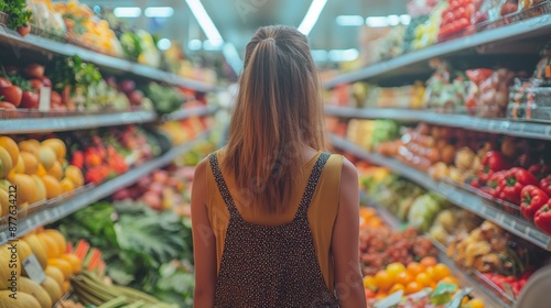 Woman shopping for groceries at a supermarket, Choosing Healthy Products In Mall