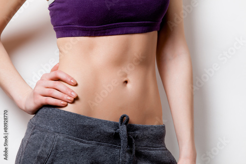 Woman showing her abs after weight loss
