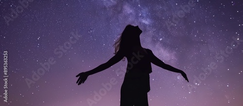 silhouette, woman, star, night, sky, lactic, way, galaxy, astronomy, space, cosmic, starry, cosmos, dark, dreamy, fantasy, nature, outdoors, landscape, background, universe, celestial, astrophotography, heavenly, wonder, mystery, magic, inspiration, spiritual, serenity, peace, calmness, hope, exploration, awe, beauty, blue, purple