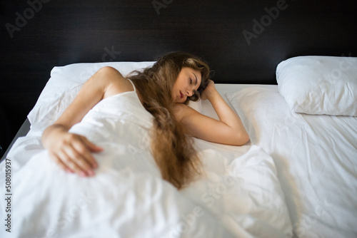 Woman sleeping in her bedroom