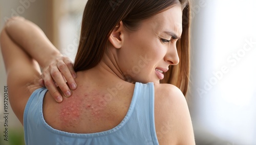 Woman Suffering from Skin Rash or Eczema on Back