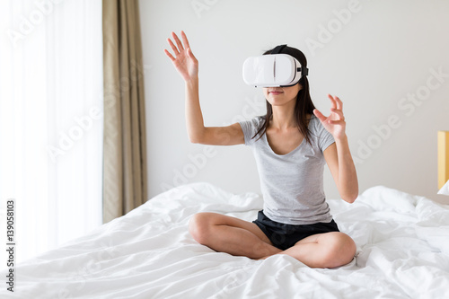 virtual, reality, device, looking, watching, reading, play, game, motion picture, video, woman, girl, female, people, japanese, korean, chinese, asia, asian, indoor, inside, bed, sitting, living, room, comfort, enjoy, viewing, via, apartment, home, house, lifestyle, life, decoration, entertainment, headset, life events, digital, content, goggles, activity, wearable, future, ar, goggles, computer, touch