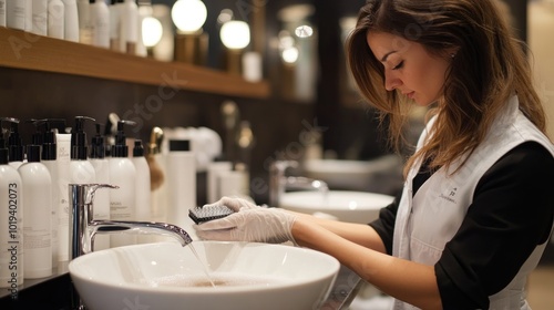 glove, shadow, shirt, grey, sleek, sharpened, minimalist, design, hand, modern, surface, water, clean, black, light, detail, care, luxury, decor, vest, tone, hygiene, grooming, bright, porcelain, sanitation, elegant, washing, chrome, professional, interior, contrast, sink, faucet, beauty, salon, stylish, background, bathroom, spa, woman, white