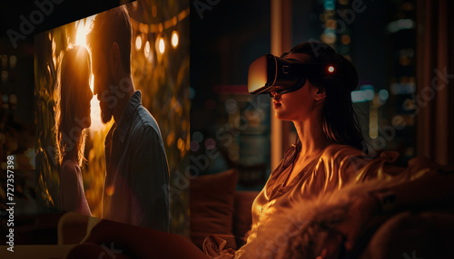 Woman watching a movie at home using an AR headset