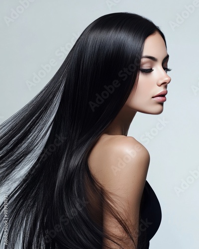 woman, hair, beauty, model, face, fashion, long, glamour, profile, coiffure, brunette, care, skin, person, studio, make-up, straight, sensuality, black, closeup, lip, style, 1, brown, people