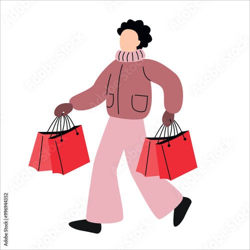 shopping, winter, shopper, bag, flat, vector, design, minimalist, person, red, retail, sale, fashion, character, modern, casual attire, holiday, consumer, purchase, walking, illustration, stylish, simple, trendy, festive, urban, graphic, coat, cosy, seasonal, discount, shop, holding, buyer, accessory, apparel, movement, lifestyle, cart, commerce, market, street, business, human, digital, practical