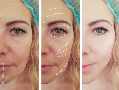 woman, beauty, young, face, portrait, beautiful, couple, skin, people, 2, happy, fashion, eye, white, model, smile, girl, make-up, closeup, hair, looking, human, make-up, person, cosmetic, collage, regeneration, mature, surgeon, retouch, rejuvenation, female, wrinkled, old, eye, plastic, cosmetology, effect, lift, difference, correction, treatment, concept, result, patient, advertisement, facial
