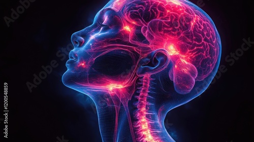 brain, spine, neural, glow, human, anatomy, health, science, light, profile, energy, connection, thought, mind, nerve, system, biology, structure, awareness, perception, intelligence, emotion, nerve cell, pulse, visualisation, creativity, cognition, wellness, life, worked, activity, design, abstract, technology, research, education, medicals, therapy, psychology, understanding, exploration, concept, art, representation, illustration, clarity, depth, harmony, balance