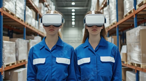 Women Wearing Virtual Reality Headsets in Warehouse Environment