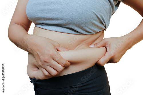 fat, fatness, woman, pressure, isolated, human, stretch, despair, weight, unhealthy, diet, frustration, concept, losing, adult, corpulent, cellulite, torso, 1, caucasian, hold, female, shape, abdomen, mark, lady, funny, figure, lifestyle, waistline, healthy, stomach, girl, care, excess, body, upset, obesity, overweight, skin, waist, background, nourishment, health, large, belly, big, hand