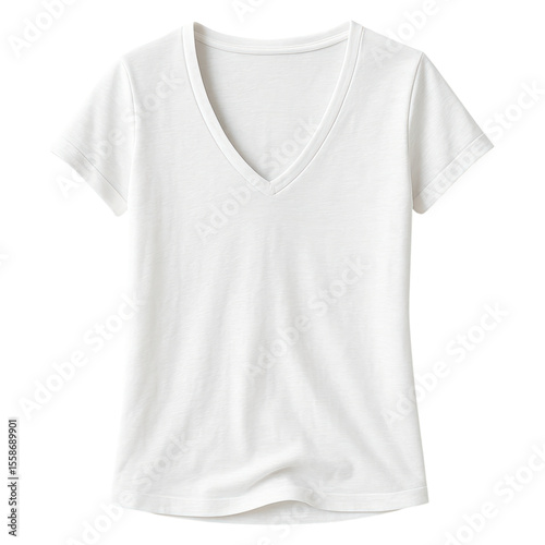 Womens Casual V Neck White Cotton T Shirt Front View isolated on a transparent background