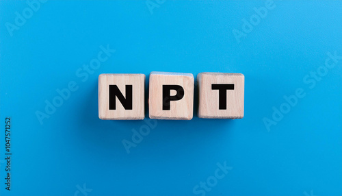 Wood cubes with abbreviation text NPT. Nuclear Non-Proliferation Treaty. National Pipe Thread.