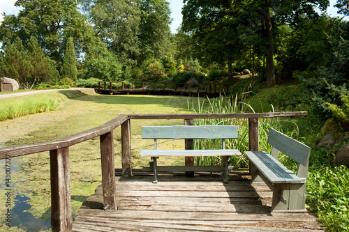 duck pond, beautiful, duckweed, old, landscape, water, tree, garden, nature, landscape, design, horizontal, beauty, green, colours, background, white, park, lake, botanical, summer, bridge, overgrown, slime, wooden, bench, 2, pier, moor, reed, cane, bulrush, midday, abandoned, english, parkland, rotten, putrid, gangway, railing, handhold, surface, molded