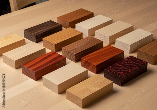 Wooden block samples assorted wood grain textures