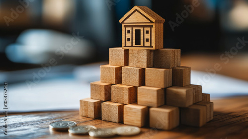 ownership, planning, property, real estate, strategy, success, financial, pyramid, wealth, investment, savings, stability, model, growth, economy, home, structure, block, house, coin, construction, building, architecture, wooden
