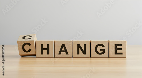 Wooden Blocks Spell Change on Light Wood Table Against White Background Presenting the Shifting Perspectives