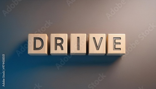 Wooden blocks spelling the word 'DRIVE' on a subtle gradient background, symbolizing motivation and ambition.