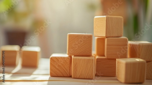 block, wooden, tower, stack, building, structure, cube, construction, play, toy, childhood, wood, craft, natural, simple, design, geometric, shape, form, creation, arrangement, balance, stability, foundation, pattern, order, process, growth, achievement, learning, education, imagination, creativity, texture, grain, light, shadow, background, blur, sunlight, warm, close, up