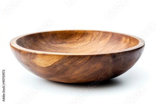 Wooden Bowl, plate, isolated on white background, full depth of field , ai