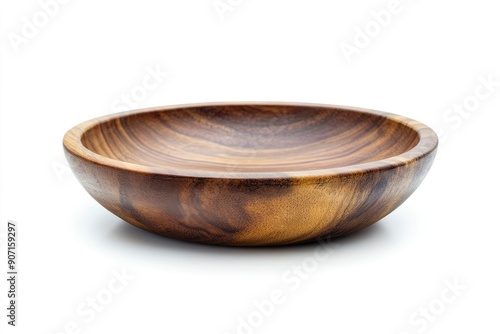 Wooden Bowl, plate, isolated on white background, full depth of field , ai
