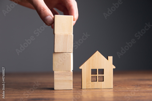 wooden cubes and house model