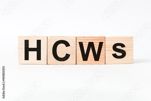 wooden cubes with text HCWs. the medicine. medical concept