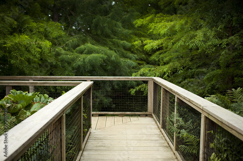 deck, bridge, wooden, pine, tree, park, garden, nature, natural, fern, vegetation, plank, board, nobody, walking, green, stroll, summer
