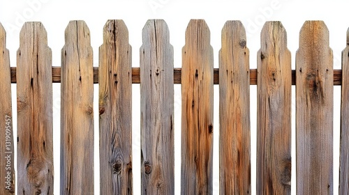 Wooden fence digitally isolated on a white background, complete with a clipping path for easy editing.