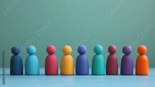 wooden, figure, colourful, bright, aligned, blue, background, diverse, standing, wood, vibrant, figurine, arranged, row, different, colours, woodcraft, group, toy, many-coloured, decoration, minimalist, simple, art, display, rainbow, cheerful, painted, playful, oneness, diversity, collection, orderly, perspective, equal, position, symmetry, toy, simplicity, craftwork, combination, harmony, variety, copy space