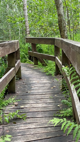 Wooden footbridge in the park near Wlodawa