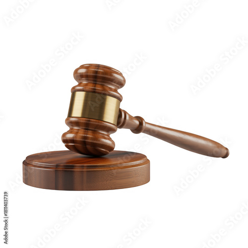 Wooden gavel with brass band on base isolated on a transparent background