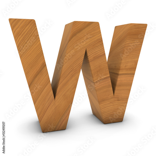 Wooden Letter W Isolated on White with Shadows 3D Illustration