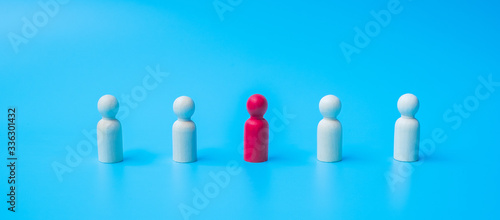 wooden man and gap distance showing preventative containing coronavirus pandemic with copy space for text. Stay at home, Quarantines and Social Distancing concept