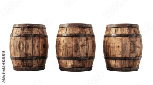 wooden oak barrels isolated on white or transparent png