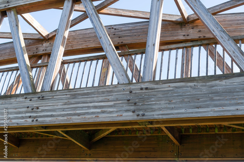 bridge, wooden, worn, park, village, span, board, wood, architecture, way, tree, old, nature, natural, footbridge, scene, object, rotten, travel, detail, decrepit, background, outdoors, pillar, calm, transportation, structure, ancient, transport, isolation, photo, cross, timber, timbering, plank, out-of-date, plain