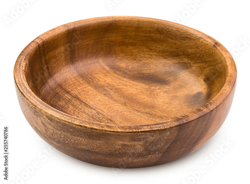 wooden plate, bowl, isolated on white background, clipping path, full depth of field