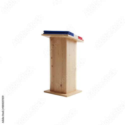 Wooden podium with French flag on top