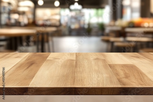 Wooden Tabletop Surface with Blurred Restaurant Interior in the Background : Generative AI