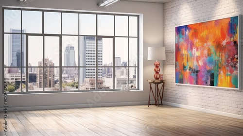 wooden, wall, floor, illustration, brick, painting, city landscape, decor, room, polished, light, window, bright, airy, space, interior, design, modern, texture, contrast, clean, minimal, stylish, vibrant, home, architecture, cosy, elegant, roomy