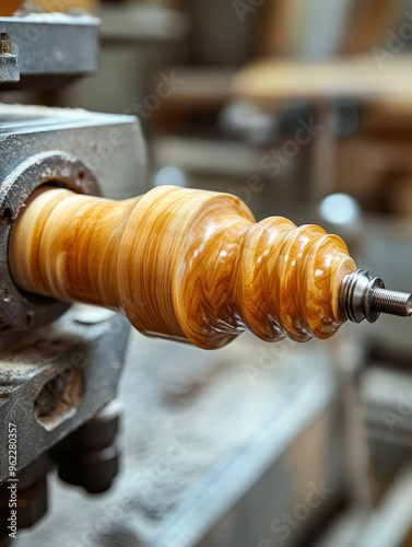 carpenter's shop, lathe, craftsmanship, carpenter's shop, spindle, wood, hand-made, artisan, workshop, precision, detailed, wood carving, turning