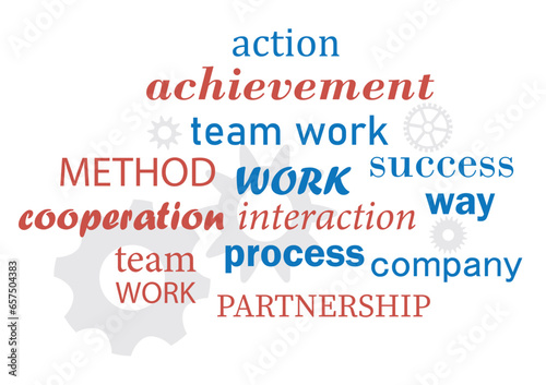 word, cloud, work, vector, word, cooperation, team, teamwork, action, way, method, interaction, process, partnership, success, cog, gear, gearwheel, illustration, collage, set, blue, red, teamwork, grey, business, concept, text, management, design, communication