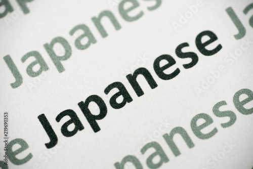 word Japanese language printed on paper macro