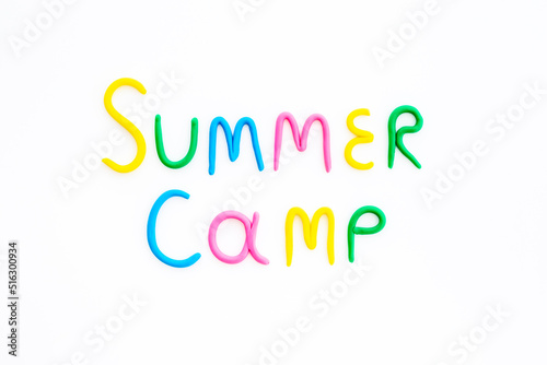 Words Summer Camp made of colorful clay. Summer kids vacation concept