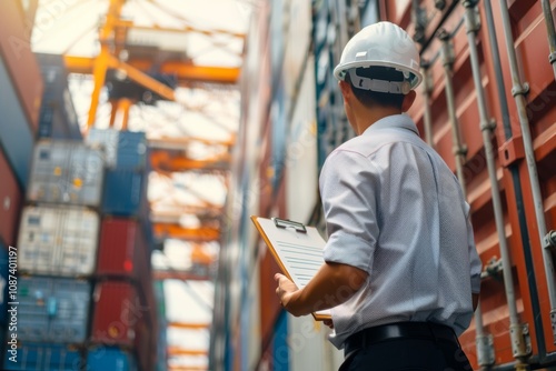 men at work, hard hat, shipping, container, logistic, yard, clipboard, stack, operation, industry, transportation, safety, planning, inspection, management, cargo, warehouse, supply, chain, professional, oversight, inventory, organisation, engineering, maritime, good, freight, delivery, protocol, teamwork, productivity, analysis, business, architecture, tracking, equipment, transport, economic, globalisation, labor, project, workflow, site, corporate, commercial, efficiency