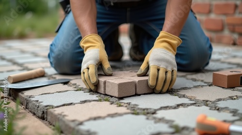 paving, construction, men at work, landscaping, installation, manual labor, tool, masonry, contractor, brickwork, precision, construction site, craftsmanship, hard work, pathway, project, bricklaying, garden, patio, repair, building, improvement, home improvement, bricolage, masonry, pavement, skill, expertise, technique, design, urban, home, development