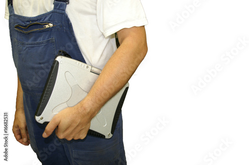 worker with laptop isolated