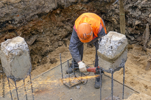 hand tool, cut, tool, building, building, construction, constructing, earth, carcase, construction site, coverall, hard hat, helmet, overall, uniform, glove, ground, asian, builder, dirt, handyman, migrant, working, job, men at work, bondman, serf, slave, reinforcement