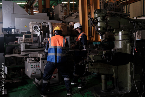men at work, factory, machinery, evening, safety-gear, manufacturing, production, tool, equipment, teamwork, industry, precision, job, metalworking, assembly, technology, mechanical, task, labor, workshop, evening light, skill, engineering, workplace, process, metal, craftsmanship, assembly line