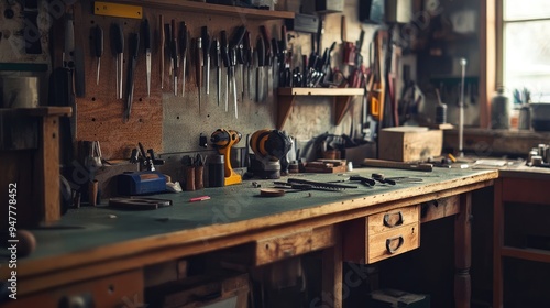 Workshop Workbench with Tools and Equipment