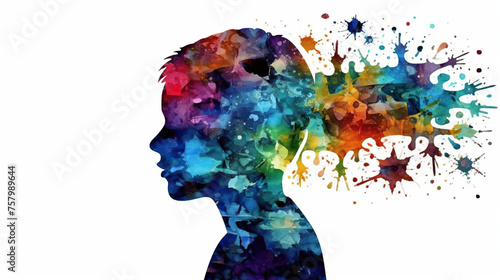 World autism awareness day card or banner, autistic kid with colorful watercolor paint art background